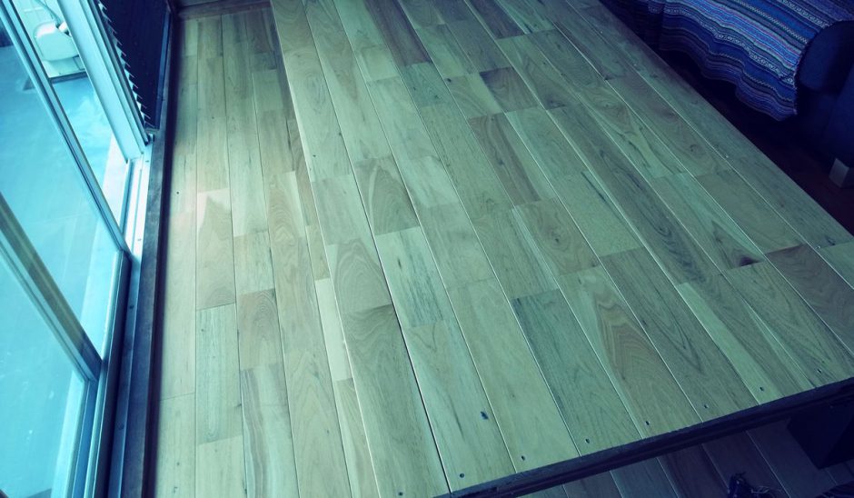 2:その上から余ったフローリングを1枚づつ貼っていきます。